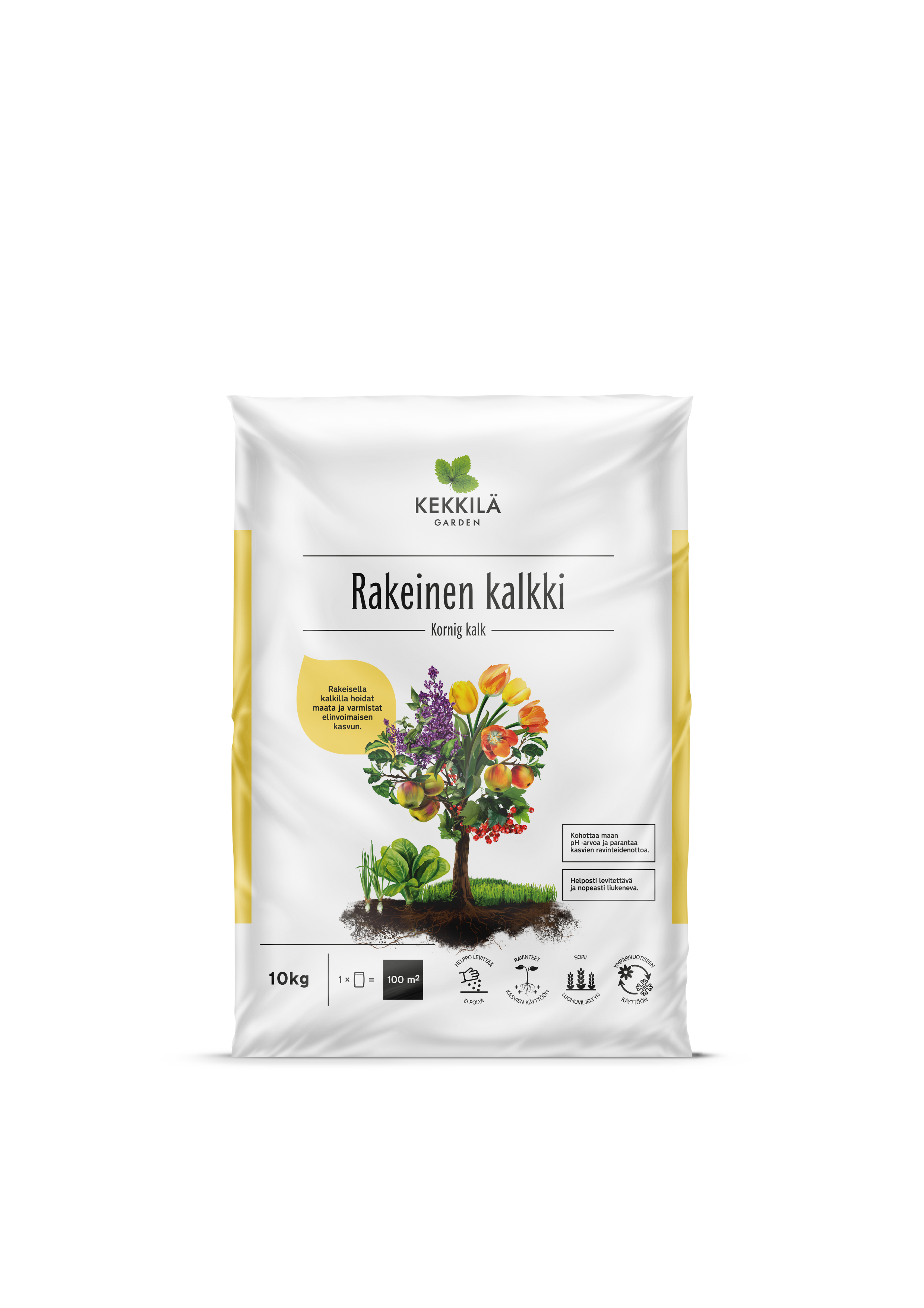 Kekkilä Rakeinen kalkki on runsaasti magnesiumia sisältävää luonnollista kalkkikiveä. Rakeistettu kalkki on helppo levittää tasaisesti, se liukenee nopeasti ja vaikuttaa pitkään.
