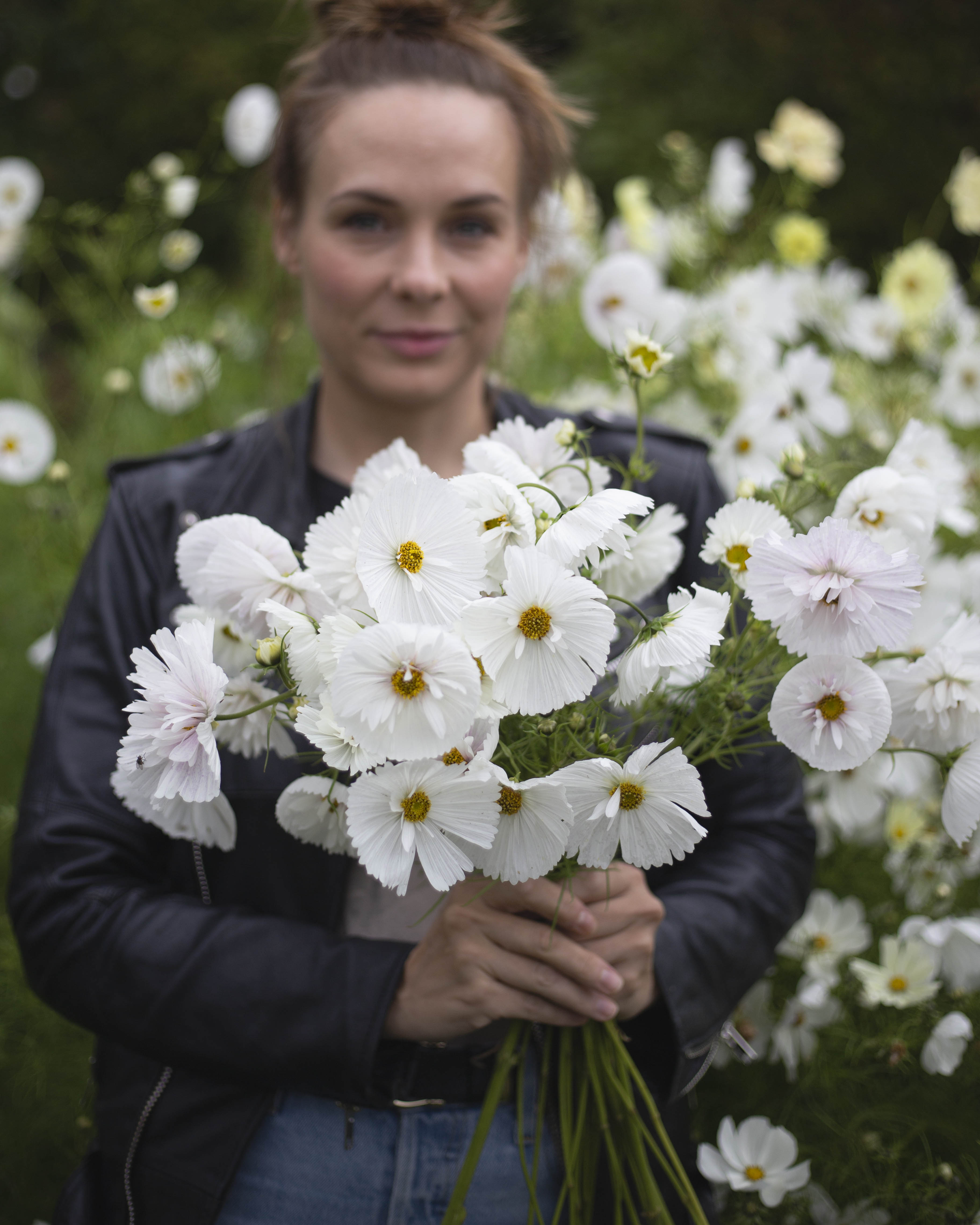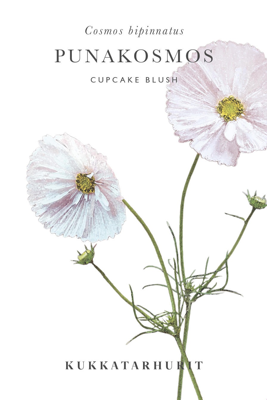 Latvo punakosmos ’Cupcake Blush’ sen ollessa 30 cm korkea. Suosittelemme punakosmokselle tuentaa.